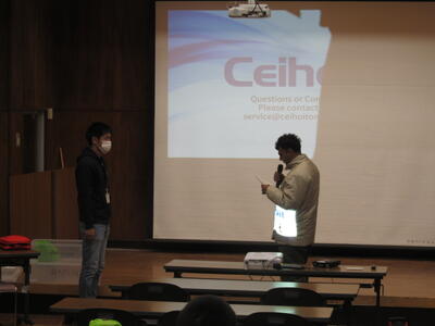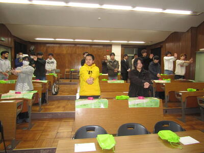 当日は、実際にAEDの使い方や、心臓圧迫の練習を行いました。